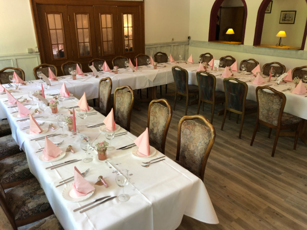 weiße Tischdecken inclusive Servietten in Wunschfarbe, Besteck & kleine Weingläser
